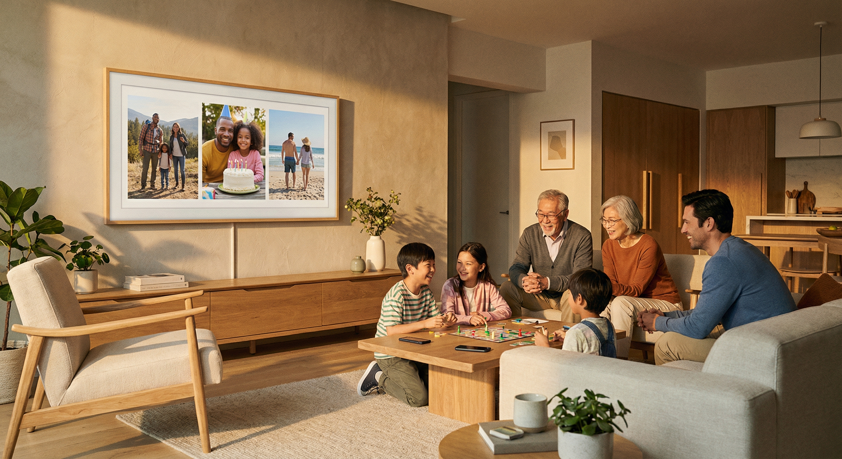 Let the memories come to you. Let the faces of your loved ones rotate through your home like sunlight. You aren't "checking Facebook." You are simply living in a home filled with family.